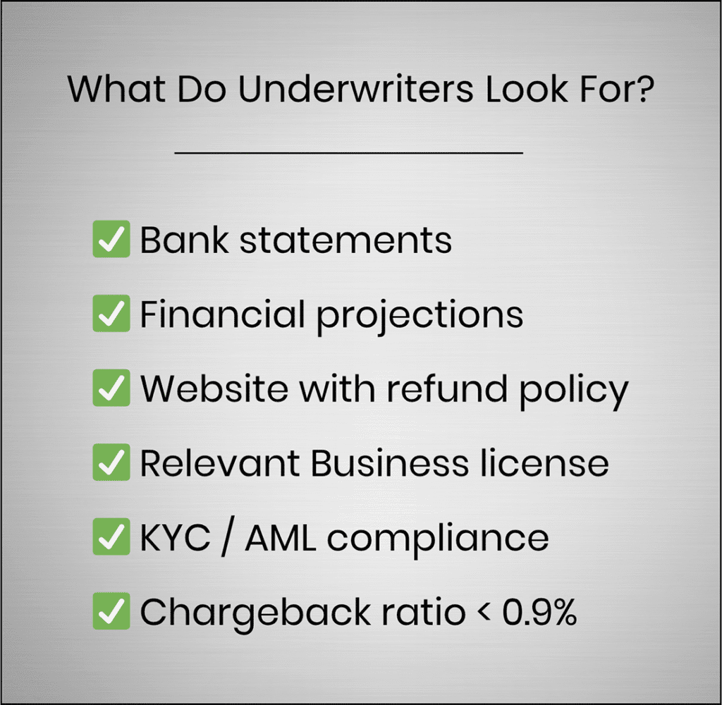This process helps processors understand the potential for chargebacks, fraud, and financial instability before onboarding a new client.
